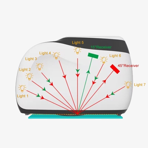 | Color Measurement Angles | 45° receiver: 45as-15°, 45as15°, 45as25°, 45as45°, 45as75°, 45as110°; 15° receiver: 15as-45°, 15as-15°, 15as15°, 15as-30°, 15as45°, 15as80° |